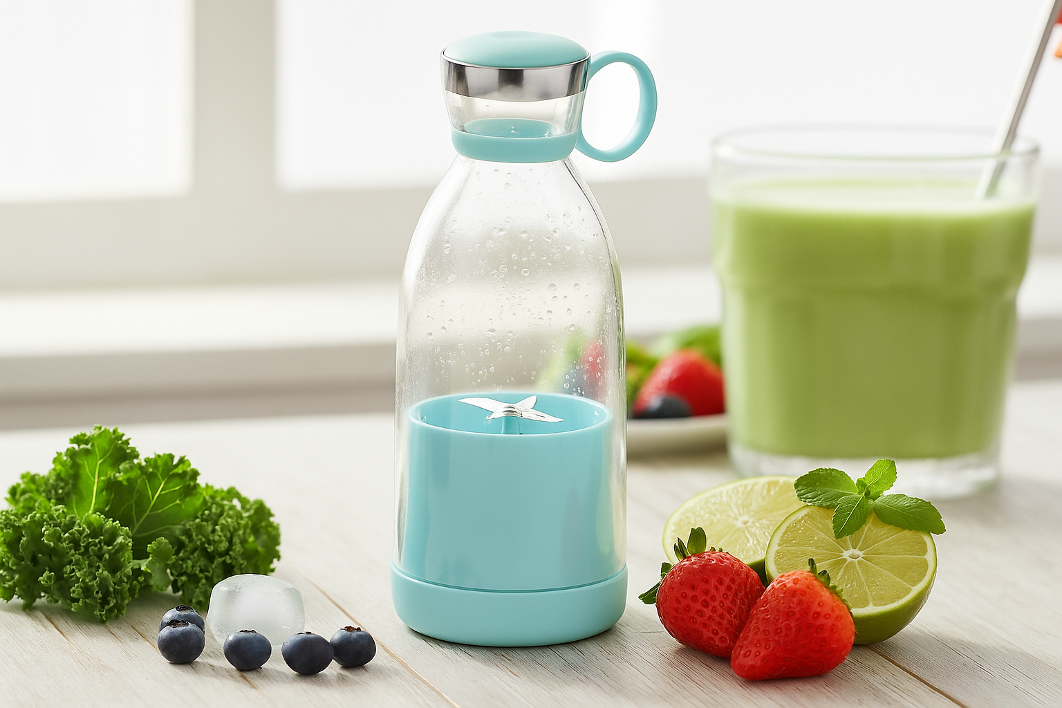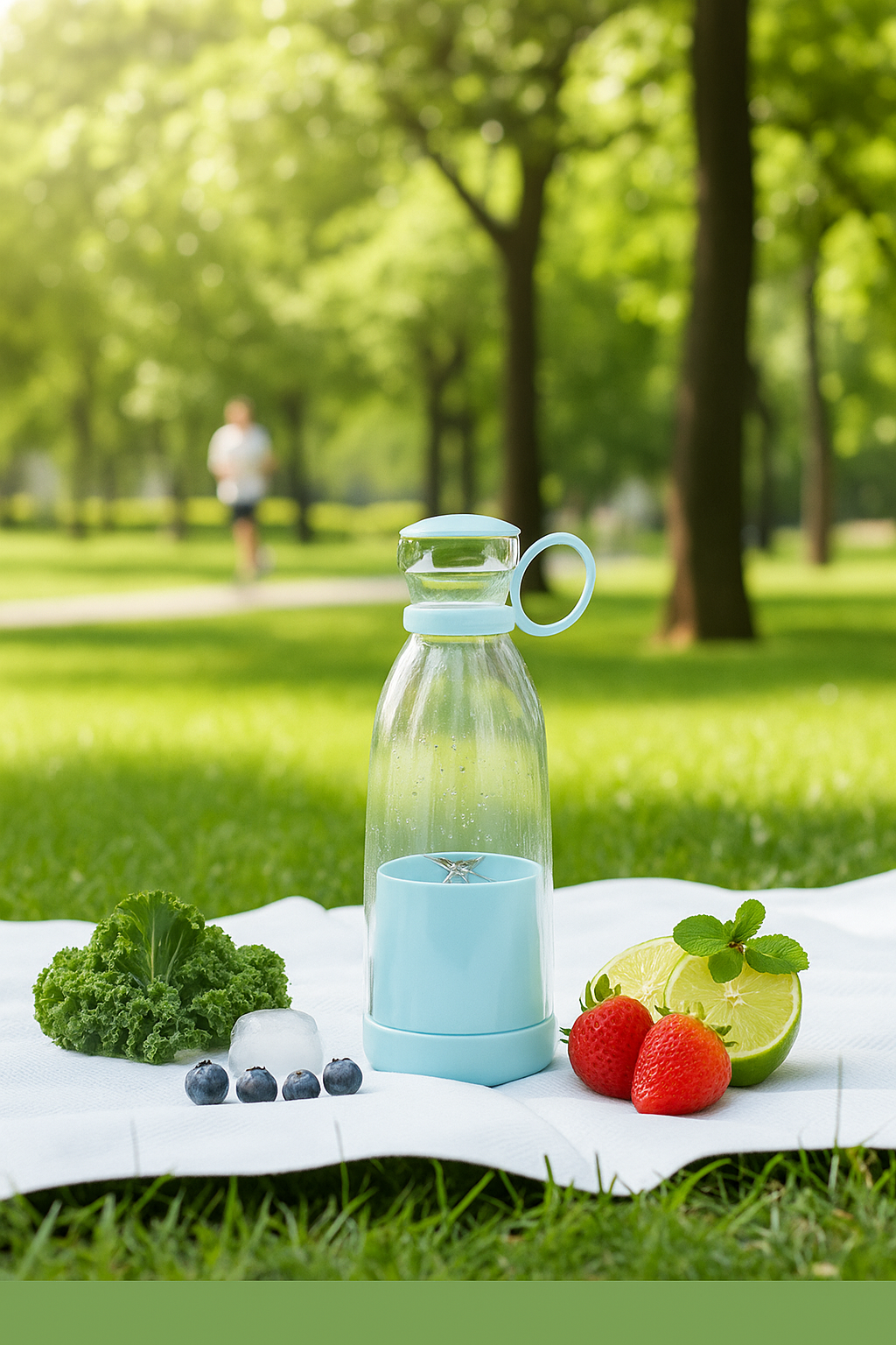 Text: Experience the freedom of blending wherever life takes you. Our GoFresh Juicer combines minimalist design with powerful performance, letting you prepare fresh juice in seconds — from your bedside to your workspace. Stay refreshed, energized, and effortlessly healthy every day.